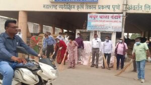 सेलु -/महाराष्ट्र शासनाच्या १०० दिवसाच्या कृती आराखडा कार्यक्रमा अंतर्गत उपशाखा सेलु येथे आवर स्वच्छतेचा मोहिमेचा शुभारंभ मा.सहायक निबंधक सहकारी संस्था सेलू.सौ.निशा काकडे यांच्या हस्ते मंगळवार ला सकाळी ९ वाजून ३० वाजता करण्यात आले होते.बाजार समिती च्या आवारात मोठ्या प्रमाणात मालाची आवक होत असते.त्यामुळे कचरा निर्माण होत राहतो.परंतु आवार नेहमी स्वच्छता असली तर बाहेरून येणार्या व तिथे काम करणार्या कर्मचाऱ्यां च्या आरोग्यावर परिणाम होणार नाही.यामुळे सतत स्वच्छता मोहीम राबविणे जरूरी आहे.त्याच अनुषंगाने पणन च्या पत्रकानुसार स्वच्छता अभियान राबविण्यास सुरुवात केली असता त्यामध्ये कृ.उ बा.समितीचे सभापती केसरीचंद् खंगार,उपसभापती प्रमोद आदमने ,संचालक गुणवंत कडू,संचालिका रेणुका कोटंबकार,सर्व अधिकारी, व्यापारी, कर्मचारी, मापारी, हमाल व ईतर यानी आपला सहभाग नोंदवून स्वच्छता मोहीम राबविली.