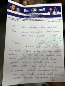 🔥देवळी तालुक्यातील काजळसरा प्रकरण तापले – भीम जयंतीच्या पर्वावर झालेला गोंधळ अजूनही पोलिसांची कार्यवाही नाही.🔥काजळसारा येथील नागरिक संतप्त…..दादागिरी करणाऱ्या पोलिसांवर लवकरात लवकर कार्यवाई करण्याची मागणी.🔥भीम आर्मीचे पोलिस अधीक्षकांना निवेदन, ३ दिवसांत कारवाईचा इशारा.
