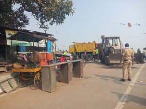भिडी=/राष्ट्रीय महामार्गावरीर वाढलेले अतिक्रमन हटविन्याच्या दृष्टीने महामार्ग प्राधिकरणनी सर्व आजछोट्या मोठ्या आव्यावसाईकांना निवेदन देवून ३० जानेवारी पर्यंत आपले अतिक्रमन हटविन्यात येईल असे निवेदनाद्वारे कळविण्यात आले असता आज आखरी अतिक्रमणावर गजराज चालला