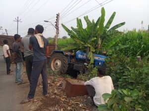 वस्तितील विद्यूत खाबाला टॅक्टरची जबर धड़क.हाच तो बिना नंबर प्लेटचा ट्रॅक्टर. भिडी / येथिल भरवस्तितील तळणी मार्गावर एका बिना नंबर...